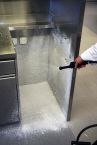 GastroSpiegel, 15.11.2011 - Reinigungsprofis wissen, dass man Zeit, Chemie und den mechanischen Reinigungsaufwand spürbar reduzieren kann, wenn der Reinigungsschaum eine lange Haft- und Einwirkzeit hat. Bei vertikalen und glatten Flächen ist das naturgemäß besonders wichtig. Der neue Foam-Matic 5P von Birchmeier erzeugt diese Schaumqualität durch ein neu entwickeltes Schaumsystem.