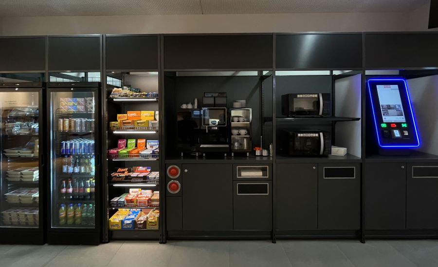 Der neue Shop ermöglicht eine zeitunabhängige Versorgung und stellt somit eine Alternative zu klassischen Kantinenlösungen dar. Das Konzept zeigt seine Stärke insbesondere dann, wenn Beschäftigte unerwartet länger bleiben oder keine eigenen Mahlzeiten dabeihaben. Denn die Mitarbeitenden können aus einem Sortiment hochwertiger Produkte wählen, darunter gesunde Mikrowellengerichte, belegte Snacks, Süßspeisen und Getränke.