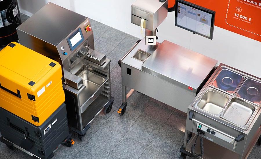 Für geordnete Behälterströme steht ein passender Stapelwagen bereit. Das konische Design der Behälter ermöglicht sowohl die manuelle als auch die automatisierte Stapelung und Entstapelung direkt auf dem Wagen und reduziert den Platzbedarf um bis zu 75 Prozent. Auf dem mobilen Lager finden rund viermal mehr Behälter Platz als Standard-GN-Behälter. Der Stapelwagen unterstützt somit ein ergonomisches Handling und eine effiziente Küchenlogistik. Der digital vernetzte Thermoport ergänzt das System durch automatische Temperaturerfassung und HACCP-konforme Dokumentation, sodass laut Hersteller die Lebensmittelsicherheit im gesamten Transportweg gewährleistet bleibt.