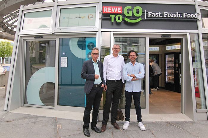 „Gerade junge Menschen wollen sich heute jederzeit und ganz bequem unterwegs versorgen können, beispielsweise mit einem Sandwich, einem Salat oder einem Kaffee. Dieser unbemannte Rewe-to-Go macht das möglich“, sagt Mehmet Tözge, Vice President Smart-Stores bei Lekkerland.