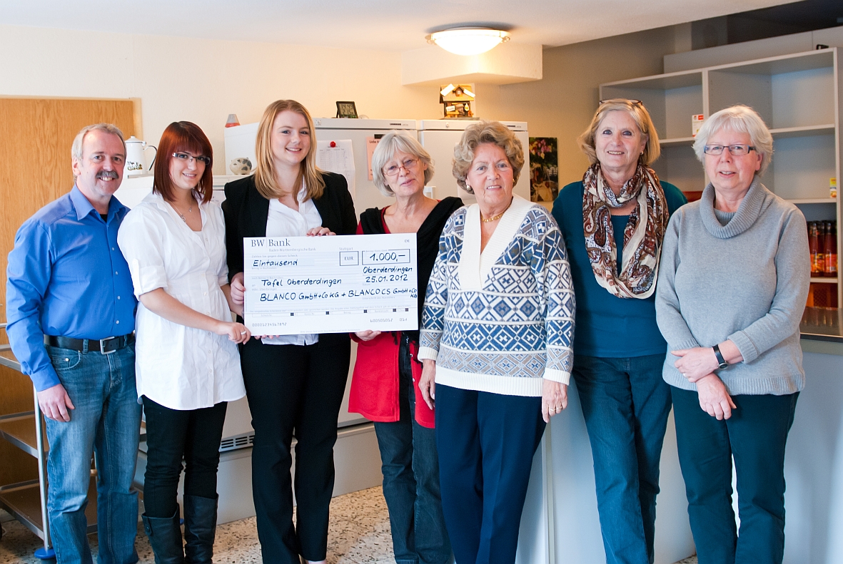 Die Mitarbeiter von Blanco und Blanco CS haben sich für einen guten Zweck zusammengetan: 1.000 Euro hat die Belegschaft aus eigener Tasche für die gemeinnützige Tafel in Oberderdingen gespendet.